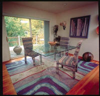 This page provides a glimpse into the scope and diversity of Carmon's work. While he specializes in quilts, floor and window coverings, Carmon also creates hand painted canvas accessories including pillows, tote bags, and wearable art. Carmon also loves to restore vintage furniture with his unique upholstery fabrics. Depending on the piece, he can create the proper yardage for your upholsterer to recover your antique and vintage furniture.